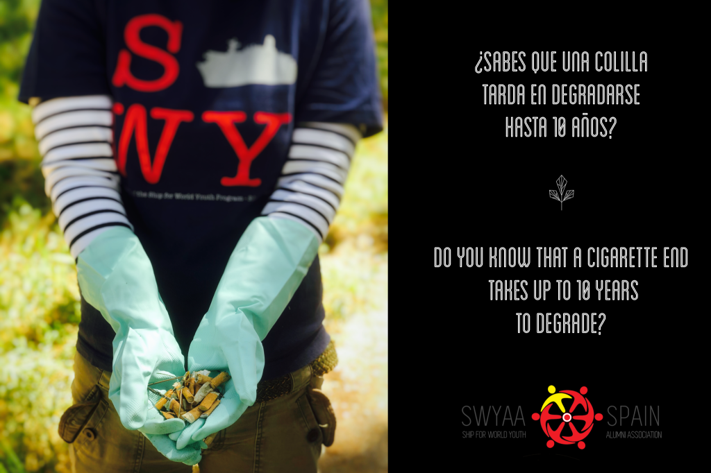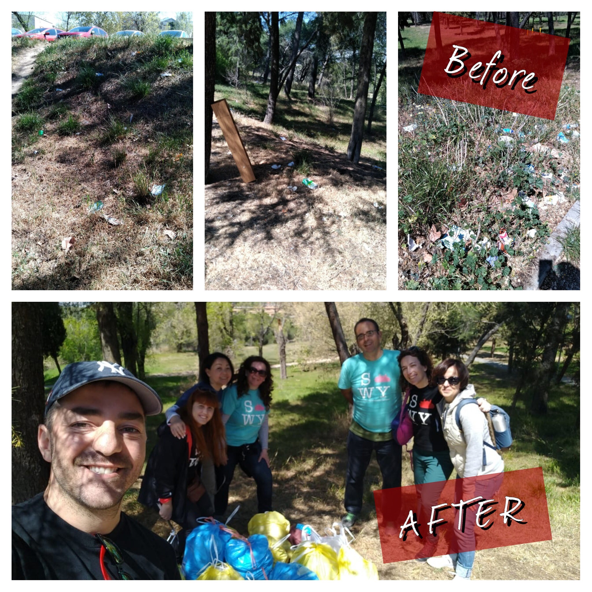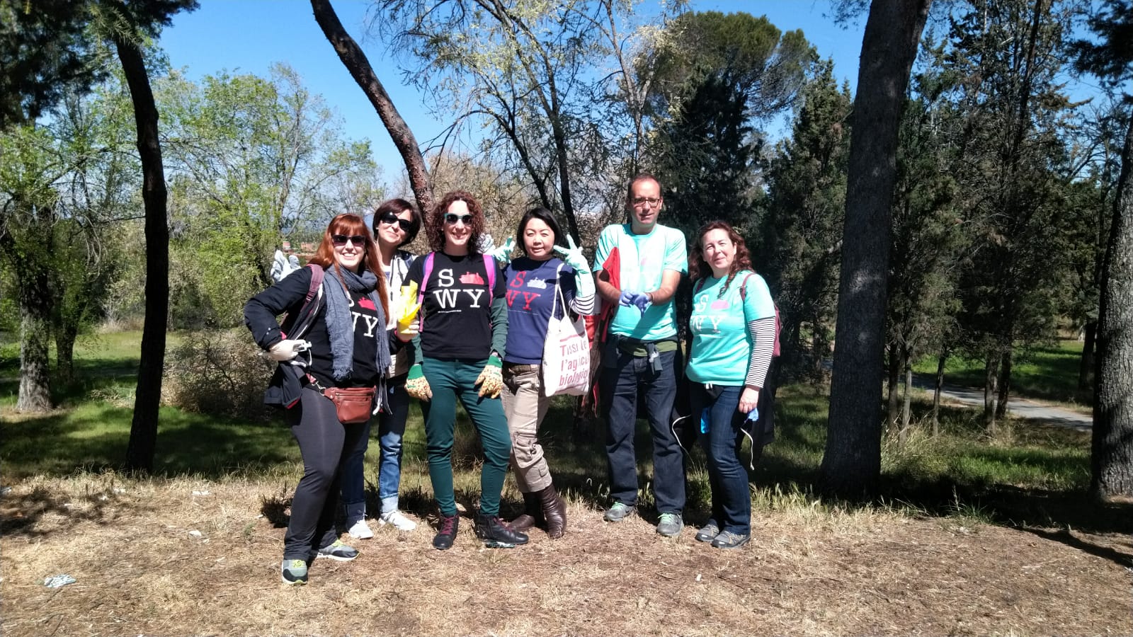 En 2019 SWYAA Spain se unió al llamado reto #swytrashchallenge para limpiar una zona contaminada por basura. El lugar elegido fue un pinar ubicado en Madrid junto al Hospital Clínico Universitario San Carlos. Varios swyers conseguimos limpiar parte del pinar que estaba repleto de colillas, botellas y otros residuos que no deberían estar en la naturaleza. Tras una mañana de trabajo llenamos más de 10 bolsas de basura.